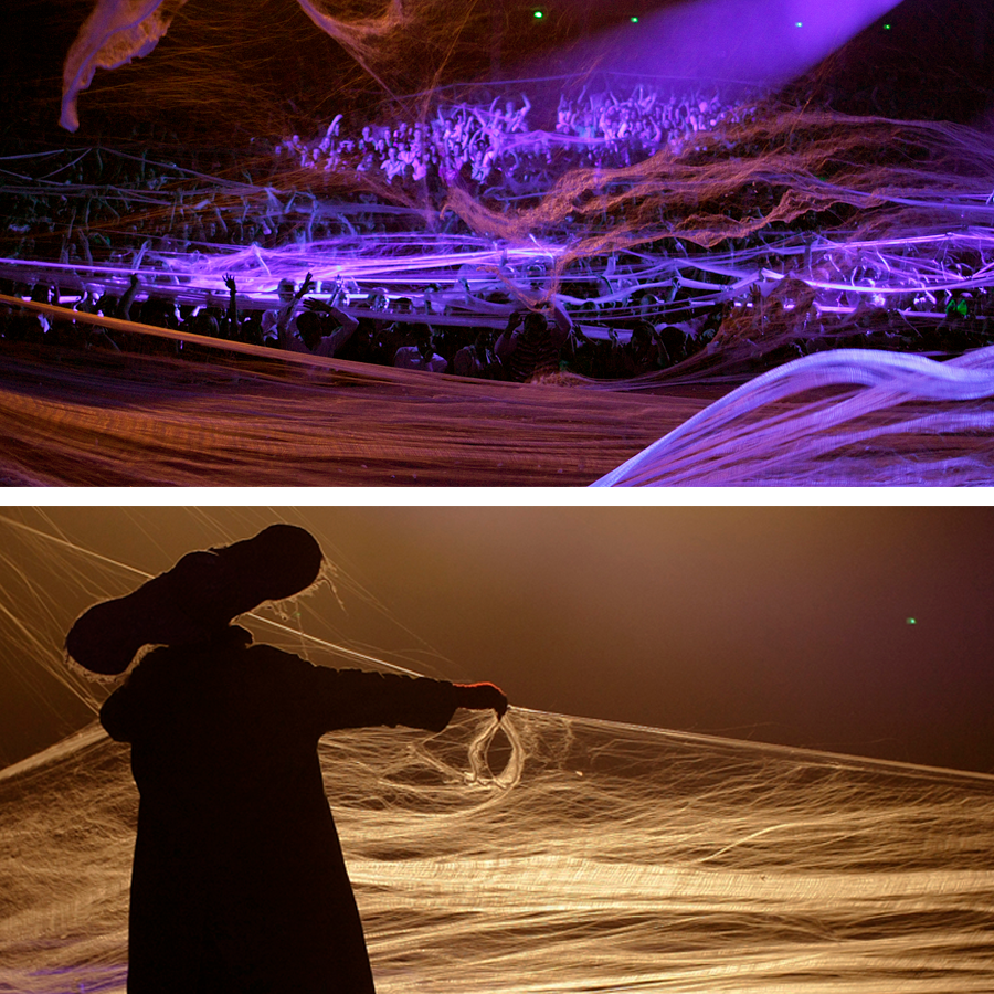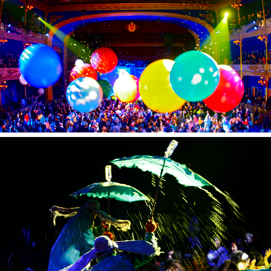 Что же такое «Снежное шоу» Славы Полунина и почему оно покорило весь мир? Это, прежде всего, особый мир из света, удивительных декораций и спецэффектов и, конечно, потрясающей игры клоунов на сцене. Он словно охватывает паутиной всё пространство зала, где происходит представление. И эта паутина реальна, она опускается со сцены на зрителей, и они тянут её, окутывая весь зал.