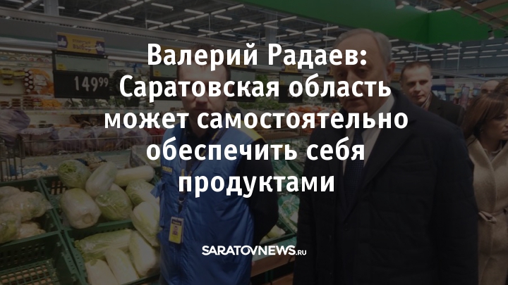 Министр экономического развития и торговли Юлия Швакова доложила, что в торговых сетях и на предприятиях пищевой и перерабатывающей промышленности Саратовской области имеется достаточный запас товаров и сырья. Саратовская область может самостоятельно обеспечить себя практически всеми продовольственными товарами первой необходимости: хлебобулочными изделиями, мясомолочной продукцией, овощами, крупами, речной рыбой, подсолнечным маслом и другими товарами.