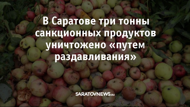 С начала 2020 года на рынках и в сетевых магазинах Саратова проведено 19 рейдов по выявлению санкционной продукции. Запрещённые продукты найдены в одном случае – 954 кг свежих яблок польского производства. «Вся растениеводческая продукция, запрещённая к ввозу на территорию РФ, была уничтожена на полигоне бытовых отходов в городе Энгельсе путем раздавливания», – сообщает ведомство.