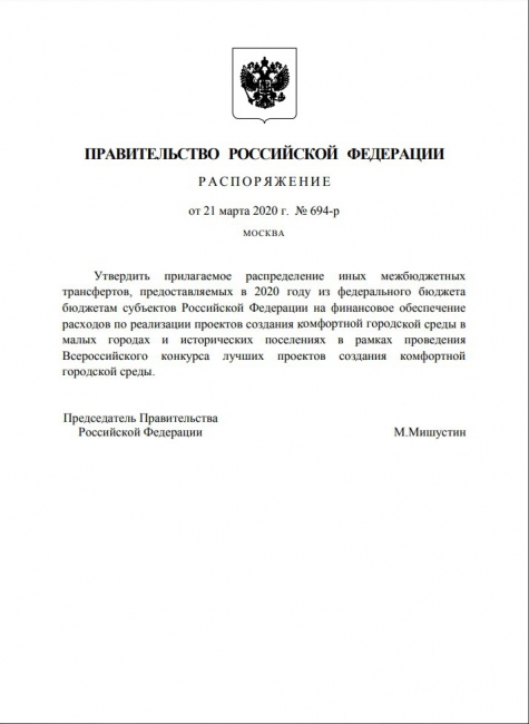 5 миллиардов распределят между 43 регионами. Соответствующее распоряжение подписал глава федерального Правительства Михаил Мишустин. Победителями от Саратовской области оказались проекты по благоустройству Вольска и Пугачева.