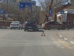 Сегодня днем в центре Саратова столкнулись два автомобиля. Примечательно, авария произошла на практически пустой дороге.