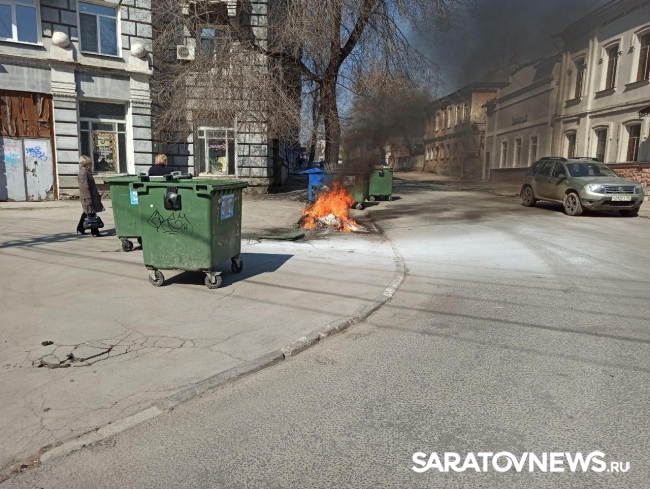 Сегодня в Волжском районе Саратова сгорели уличные баки для мусора. Пластиковые контейнеры кто-то поджег на пересечении улиц Соляной и Лермонтова. По словам очевидцев, сначала с огнем пытались справиться жители близлежащих домов. Затем к ним присоединились автомобилисты, которые использовали огнетушители.