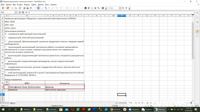 Напомним, неловкая ситуация произошла сегодня утром. Саратовская предпринимательница направила запрос в администрацию Заводского района с просьбой прислать образец реестра на пропуска. В ответ пришел документ для ООО «Олень», директором которого является Олигофренов Олень Долболетович. Теперь шутника ждет наказание.