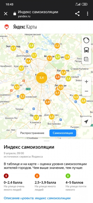 Пару дней назад мы писали об индексе самоизоляции, предоставленном «Яндекс-картами». Всего за два дня индексы некоторых городов стремительно изменились.