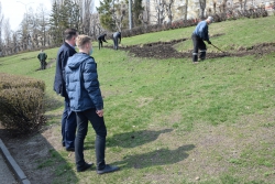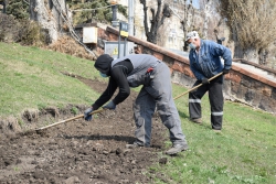 Сегодня началась покраска бортового камня, также идет обработка зеленых зон, в частности, монтаж систем полива. Также начата подготовка зон для посадки цветов. Всего планируется высадить более двадцати тысяч цветов по всему городу.