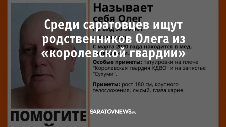 Сегодня, 17 апреля, волонтеры «Лиза Алерт» сообщили о розыске на территории Саратовской области родственников неизвестного мужчины, находящегося в данный момент в Краснодаре. Информация появилась в группе поискового отряда в социальной сети.