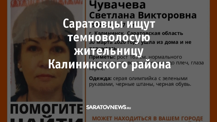Пропала 47-летняя Светлана Чувачева из Калининского района. 30 марта она ушла из дома и не вернулась. С тех пор ее не видели.