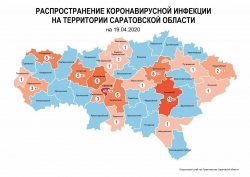 Сегодня, 19 апреля, обновлена карта распределения лабораторно подтвержденных случаев коронавируса по районам Саратовской области. Документ опубликован оперштабом.