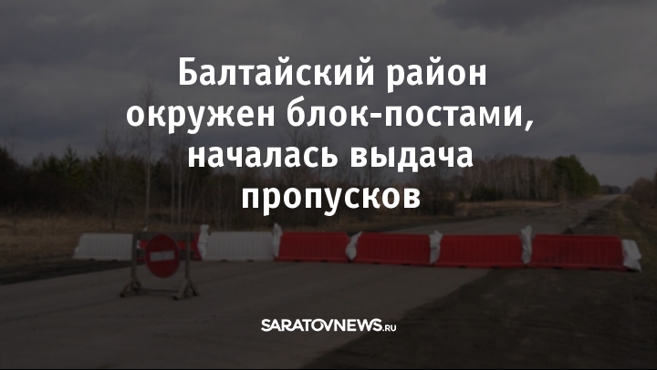 На основных пяти въездах в закрытый вчера на карантин по коронавирусу Балтайский район организовали блок-посты. Второстепенные проезды перекрыли блоками и бордюрными камнями.