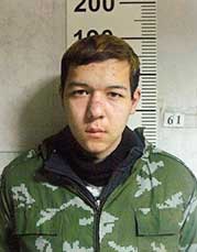 На молодом человеке были: красная вязанная шапка, темный свитер, темная матерчатая куртка на замке, армейская полевая камуфлированная одежда с петлицами танковых войск на воротнике куртки, черные кирзовые сапоги (размер 44-45).