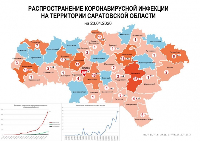 Сегодня, 23 апреля, антикоронавирусный оперативный штаб при правительстве Саратовской области опубликовал обновленную карту распространения инфекции по региону.