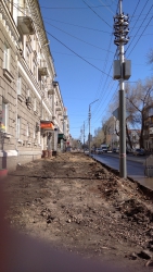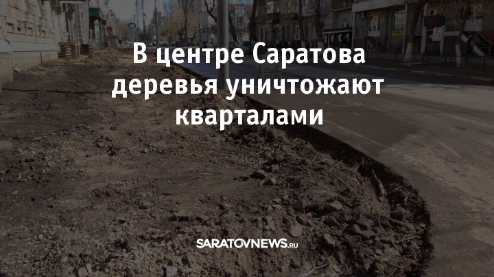 Масштабный ремонт тротуаров, который начался в Саратове в апреле текущего года, сопровождается массовой вырубкой деревьев. Например, сегодня зеленая зона была полностью «зачищена» на улице Вольской в Октябрьском районе. Рабочие уничтожили все деревья в квартале от Советской до Шевченко.