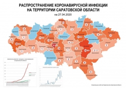 Сегодня, 27 апреля, была обновлена карта распределения лабораторно подтвержденных случаев коронавируса в районах Саратовской области. Она опубликована оперштабом.