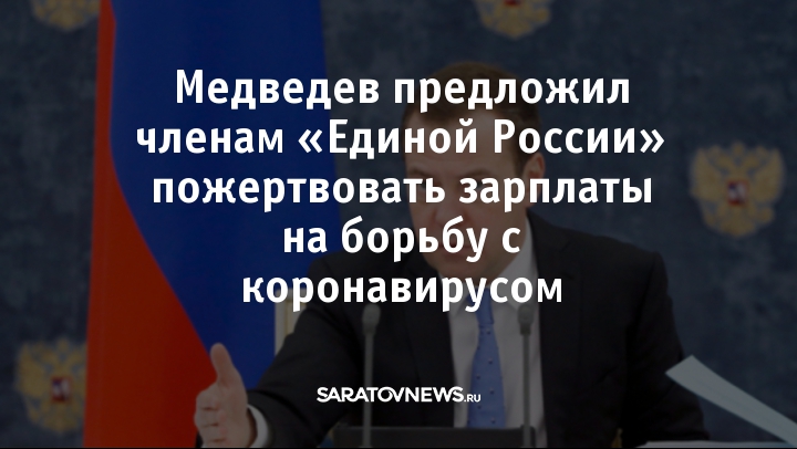 На прошедшем сегодня в Москве президиуме генерального совета «Единой России» глава партии Дмитрий Медведев предложил однопартийцам пожертвовать свои зарплаты за один месяц на борьбу с коронавирусом в России. Об этом сообщает Telegram-канал РИА «Новости».