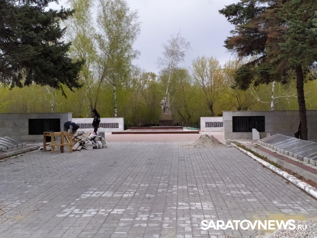 Несмотря на то, что в этом году на 9 мая не запланировано масштабное празднование Дня Победы, мемориал на братской могиле воинов на Воскресенском кладбище в Саратове продолжают реставрировать.