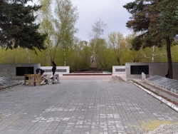 Дабы были соблюдены необходимые предосторожности, сегодня на объекте были задействованы только двое рабочих. Сейчас ведутся работы по реставрации гранитных памятных плит.