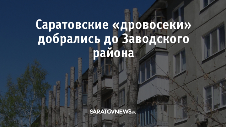 Теперь борьба с зелеными насаждениями добралась и до окраин. В Комсомольском поселке возле двух пятиэтажек кронировали все растущие деревья, пощадив только две березы. Судя по толщине стволов, деревья явно не являлись «биологически устаревшими». Как и не мешали трамвайным проводам маршрута №5, о чем рассказали жители одного из домов. Сейчас вместо зеленых деревьев — одни столбы, которые засохнут уже через несколько лет (саратовские биологи и фитопатологии неоднократно заявляли, что кронированное дерево живет максимум 3 года).