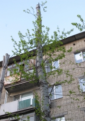 Однако горожане утверждают, что это не так. На днях в поселке Комсомольский (Заводской район) были кронированы тополя, растущие вдоль трех пятиэтажных домов. По диаметру стволов оставшихся в живых растений и годичным кольцам видно, что пострадавшие деревья имеют возраст примерно 35 - 38 лет. И «биологически устаревшими» их назвать сложно.