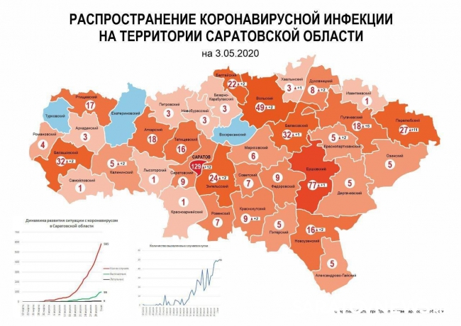 Сегодня, 3 мая, обновлена коронавирусная карта Саратовской области. Информацию публикует оперштаб по борьбе с инфекцией.