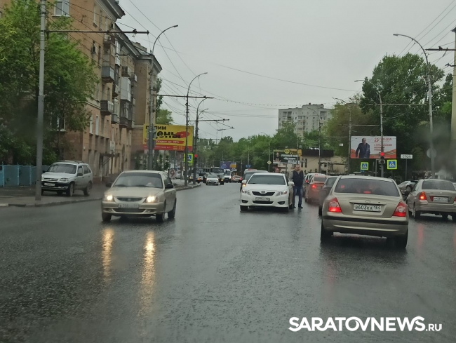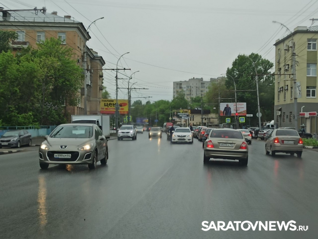 В Заводском районе Саратова образовалась пробка. Два авто не поделили дорогу.
