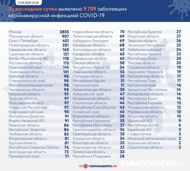 На сегодняшний день, 17 мая, Саратовская область остается в лидерах по темпам распространения коронавируса среди населения. Об этом сообщил оперштаб.