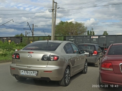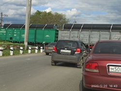 В 16:43 поезд проезжал через переезд на Сокурском тракте. В этот момент перед переездом на встречную полосу встали сразу четыре авто.