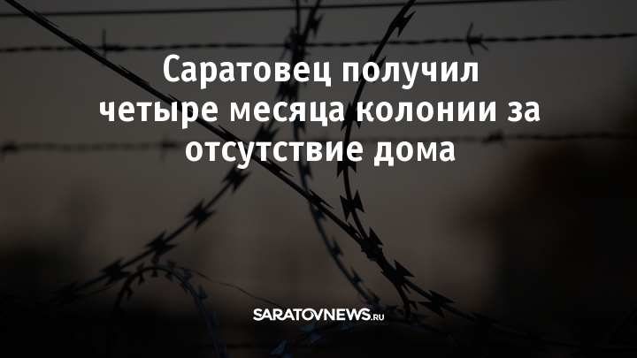 В Волжском районе Саратова суд приговорил ранее неоднократно судимого 27-летнего жителя к четырем месяцам лишения свободы в колонии общего режима за отсутствие дома. Об этом сегодня, 20 мая, сообщает пресс-служба региональной прокуратуры.