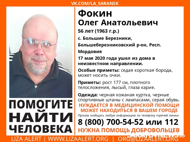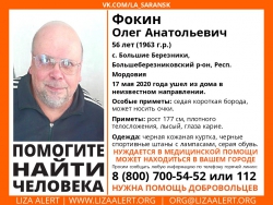 Стало известно, что пропал житель соседнего региона, 56-летний Олег Фокин. Мужчина проживает в селе Большие Березники, Большеберезниковский района в республике Мордовия. По имеющейся информации, 17 мая этого года он ушел из дома в неизвестном направлении и не вернулся. Также стоит отметить, что пропавший страдает хроническим заболеванием и нуждается в медицинской помощи. Он может находиться в любом городе.