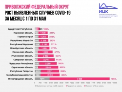 Специалисты проанализировали динамику распространения коронавируса в Приволжском федеральном округе с 1 по 31 мая. Таким образом, получены данные об общем количестве выявленных случаев COVID-19 и месте региона среди других субъектов ПФО.