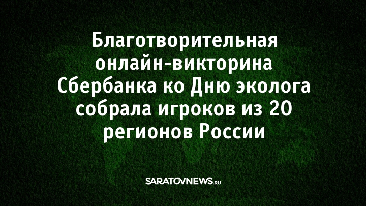 8 июня 2020, Самара — Благотворительная онлайн-викторина, посвященная Дню эколога, генеральным партнером и инициатором которой выступил Поволжский банк Сбербанка, собрала свыше 1000 игроков из 20 субъектов РФ.