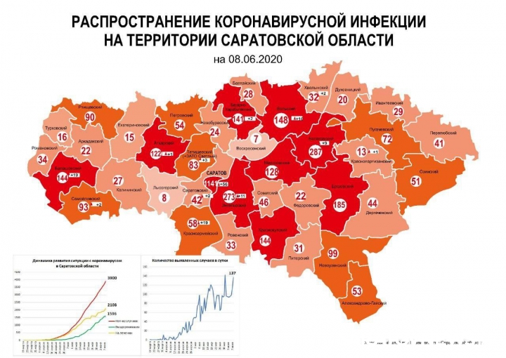 Сегодня, 8 июня, обновлена коронавирусная карта Саратовской области. Опубликованы последние данные оперштаба.