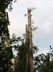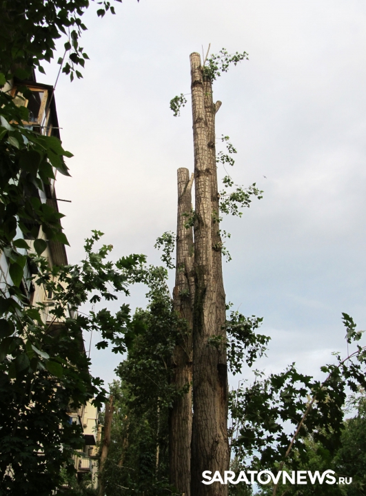 Борьба с зелеными насаждения пришла из центра Саратова на окраины. Жители Ленинского и Заводского районов жалуются в социальных сетях на варварское кронирование и спиливание деревьев. В Комсомольском поселке деревья стали исчезать с апреля, причем как старые, так и молодые.