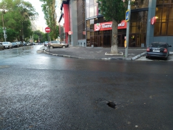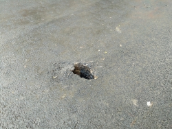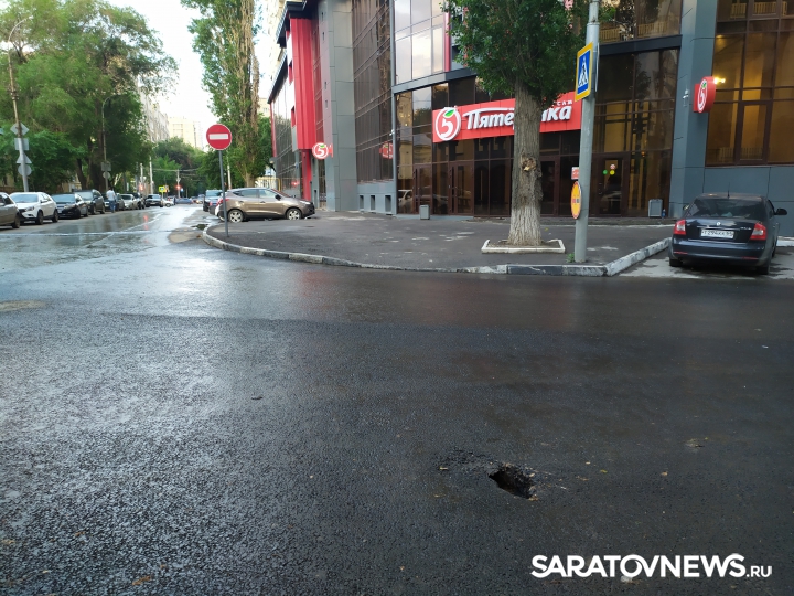 На пересечении Мичурина и Хользунова не так давно положили асфальт. Через непродолжительное время в покрытии появилась дыра.