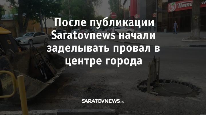 В центре Саратова заделали провал в асфальте. Напомним, об опасном дефекте Saratovnews писали в воскресенье.
