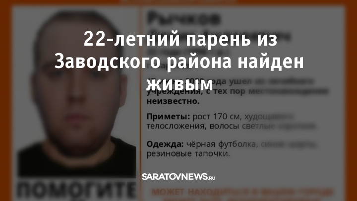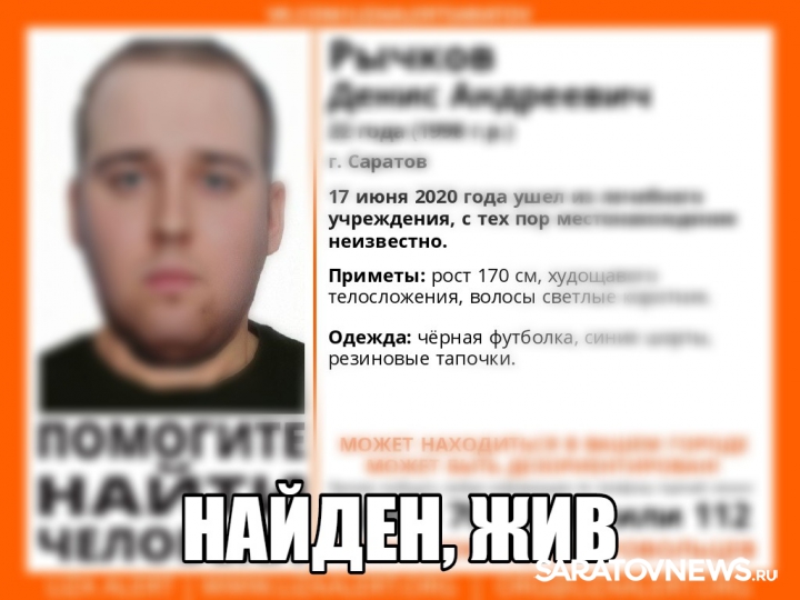 Пропавший 17 июня житель Заводского района Саратова найден живым. 22-летний парень в порядке, он вернулся домой.
