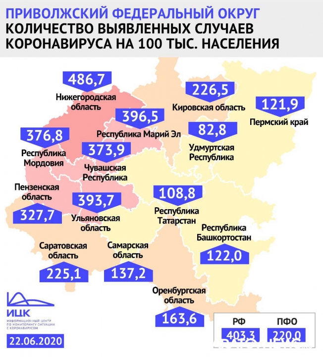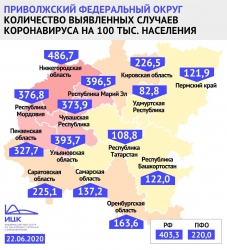 Саратовская область находится на восьмом месте в Приволжском федеральном округе по количеству выявленных случаев заражения на 100 тысяч населения. Такие данные предоставил федеральный информационный центр по мониторингу ситуации с коронавирусом. При этом всего неделю назад регион был на втором месте в Поволжье по этому показателю.