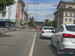 Сегодня, 1 июля, движение по улице Горького в районе Театральной площади оказалось затруднено из-за вставшего на дороге троллейбуса. Об этом сообщил очевидец ЧП.