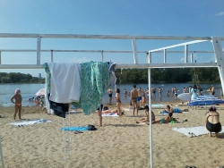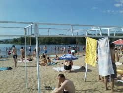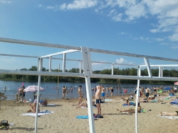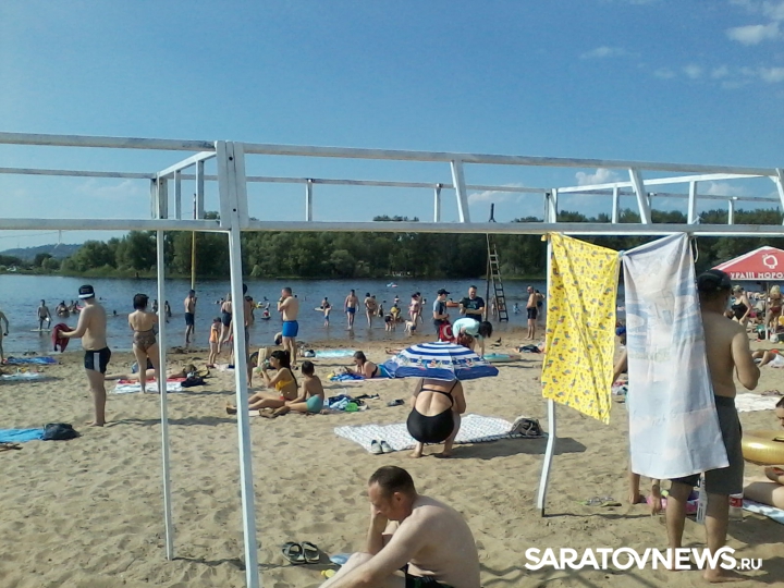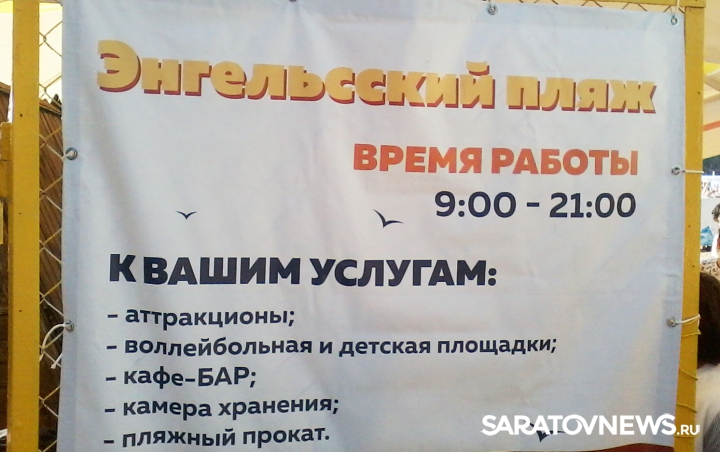 Один из коммерческих энгельсских пляжей, расположенный бок о бок с бесплатным местом отдыха (ограду заменяет сетка), наибольший наплыв отдыхающих испытал 4 июля. По крайней мере, об этом корреспонденту ИА Saratovnews сообщили продавцы билетов (50 рублей вход). Совпало все: официальное разрешение посещать места отдыха, выходной день, очень жаркая погода. Однако при посещении пляжа не покидает ощущение, что зону отдыха готовили наспех.