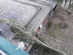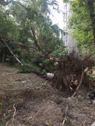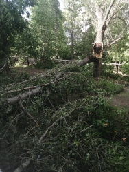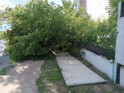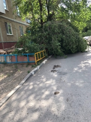 В Октябрьском районе упало пять деревьев, при этом одно из них рухнуло на детскую площадку. От зеленых насаждений пострадали провода, кондиционер квартиры и забор автостоянки. Одно из деревьев упало на газовую трубу, но она выдержала удар.