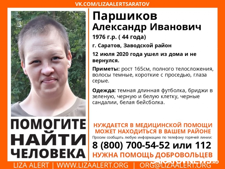 Сегодня, 12 июля, в Заводском районе Саратова пропал горожанин, нуждающийся в медицинской помощи. Волонтеры «Лиза Алерт» просят горожан помочь в поисках.