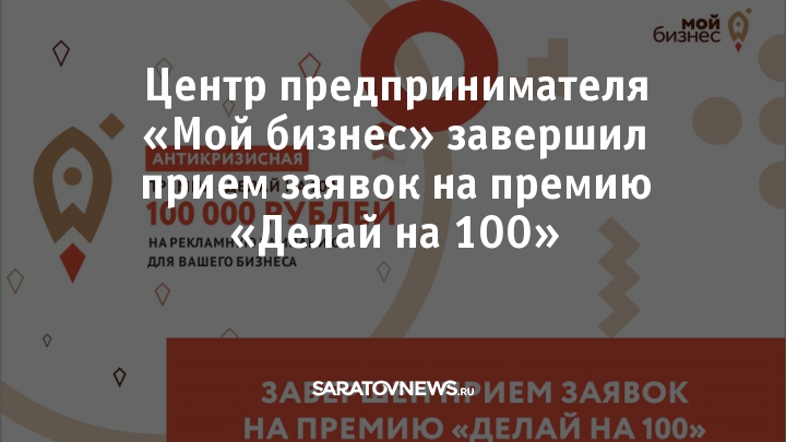 Премия «Делай на 100» – уникальная форма поддержки предпринимательства в Саратовской области, в рамках которой предприниматели получают сертификаты на 100 000 рублей на запуск рекламной кампании для бизнеса. Впервые премию вручили предпринимателям в сентябре 2019 года, вторая и третья волна состоялись в январе и мае 2020 года соответственно.