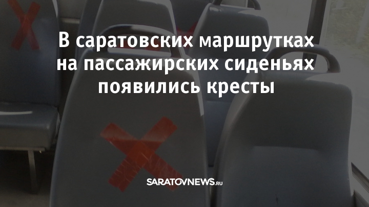 Пассажирским перевозчикам оказалось мало объявлений о соблюдении социальной дистанции в 1,5 метра в салоне автобуса, или вывесок с просьбой не садиться на соседние места для сидящих пассажиров. На днях в некоторых саратовских маршрутках на спинках сидений появились зловещие кресты, приклеенные красным скотчем.