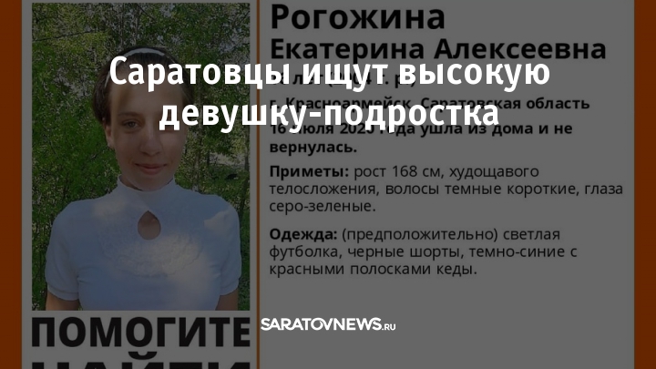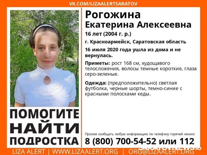 Пропала Екатерина Рогожина, ей 16 лет. Вчера, 16 июля, она ушла из дома, и с тех пор местонахождение подростка неизвестно.