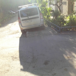 Lada нарушителя припаркована на тротуаре во дворе на 2-й Садовой, 112А.