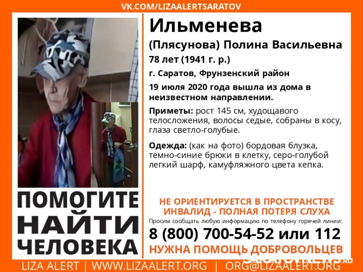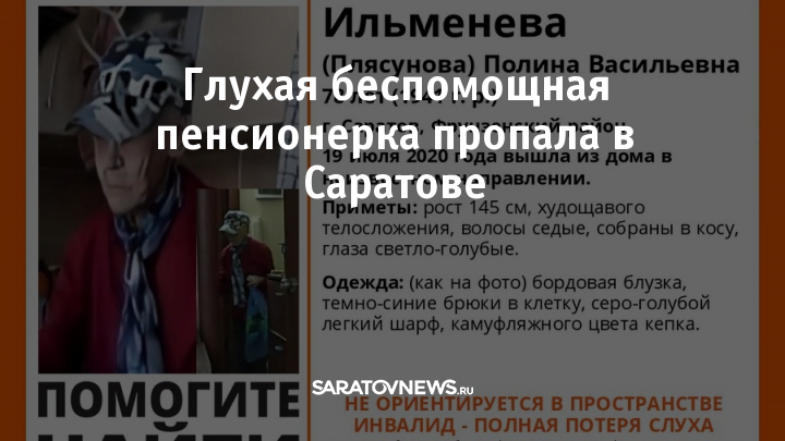 Сегодня, 20 июля, во Фрунзенском районе Саратова пропала пожилая женщина. Об этом волонтеры «Лиза Алерт» сообщили в своей группе в социальной сети.