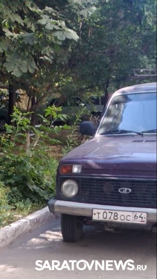 На проспекте Энтузиастов, 57 припаркована мешающая коммунальщикам «Нива» с саратовскими номерами т048ос.