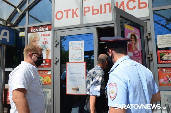 Вчера, 27 июля, полиция совместно с сотрудниками саратовской администрации и регионального Роспотребнадзора проверила соблюдение масочного режима на рынке «Арига» и в ТЦ «Победа Плаза».