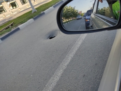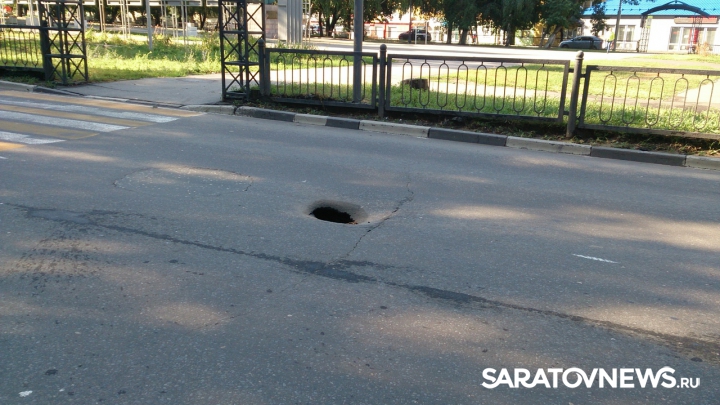 Саратовские сообщества вновь подняли тему неблагоустроенных дорог. Сегодня в «Саратов онлайн» пользовательница Светлана Шевелёва опубликовала фотографию дыры в дорожном полотне в Кировском районе.