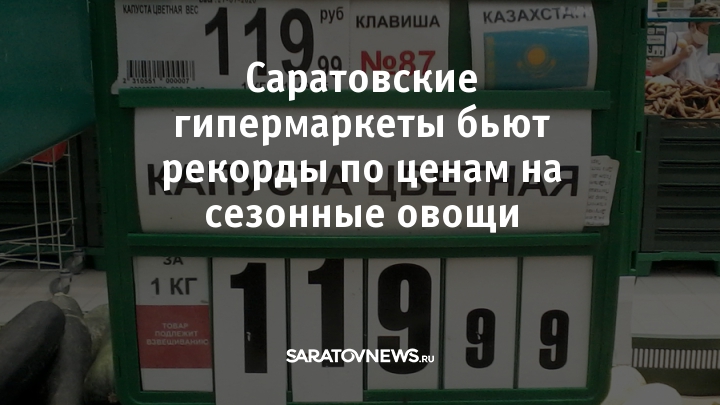 ИА Saratovnews продолжает отслеживать разницу в стоимости овощей в магазинах и на рынках Саратова. Лидером по высоким ценам на цветную капусту снова стал гипермаркет «Ашан»: килограмм цветной капусты, привезенной из Казахстана, стоит 119 рублей 99 копеек. В магазинах саратовских продовольственных сетей овощ продается по цене 80-90 рублей за кг, а на рынках его стоимость составляет 40-50 рублей за килограмм.