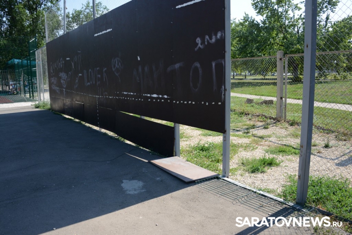 В плачевное состояние пришли построенные только в прошлом году спортсооружения в зоне активного отдыха. Ее изюминкой и местом притяжения для подростков стала баскетбольная площадка – с современным мягким покрытием, яркой разметкой, трибунами для зрителей с удобными сиденьями. Но… кто-то здесь играл, а кто-то самоутверждался разрушением. Сегодня уже практически разодрано ограждение, вырвана с корнем часть сидений на трибунах, искорежены баскетбольные кольца. На теннисном корте в клочья порвана сетка, а стенка для отработки теннисных ударов стала полотном для граффити сомнительного художественного достоинства.